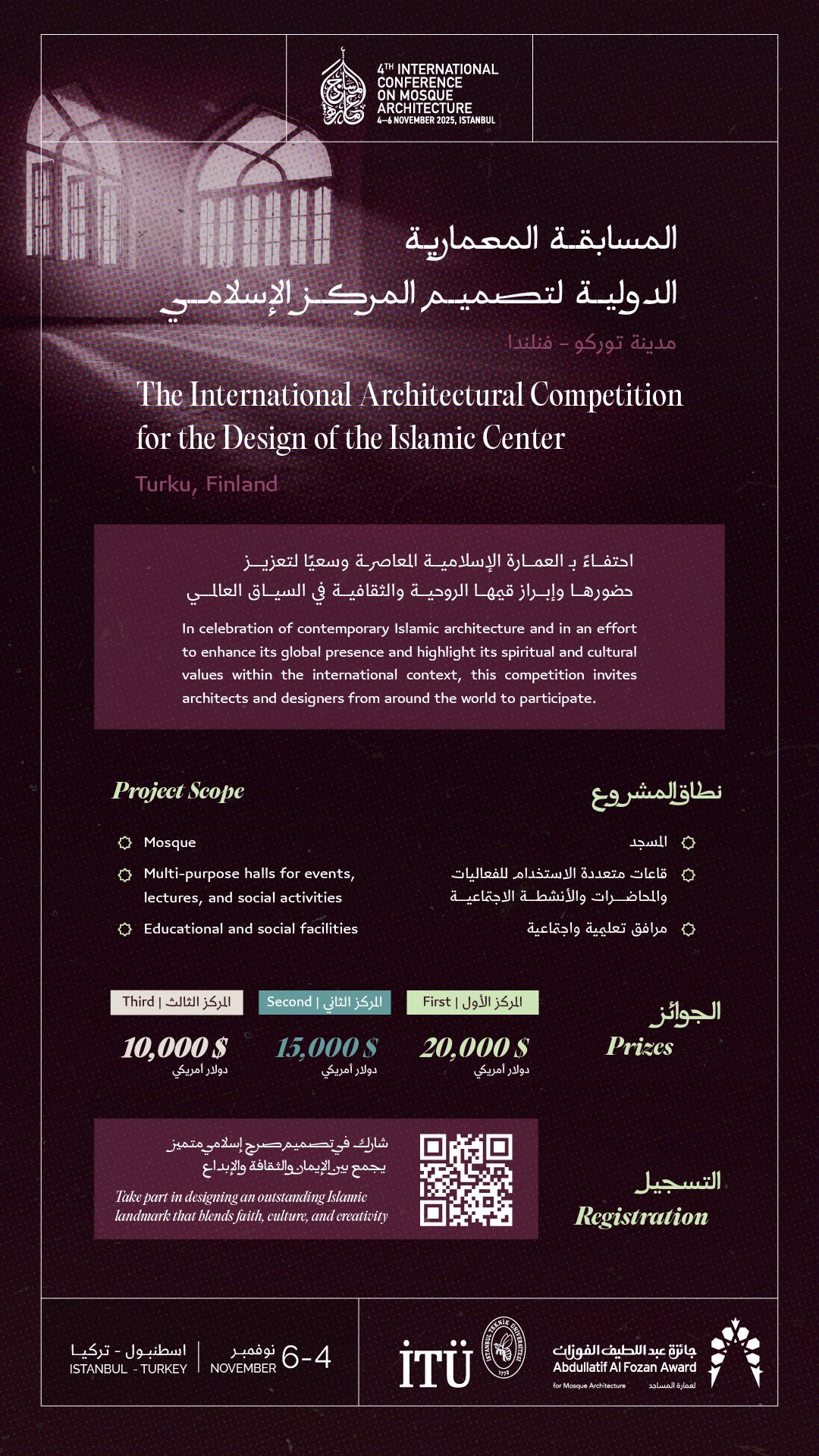 In celebration of contemporary Islamic architecture and in an effort to enhance its global presence and highlight its spiritual and cultural values within the international context, this competition invites architects and designers from around the world to participate.